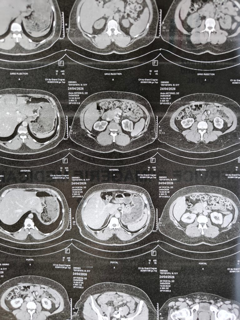 There was a second reason too. I officially have diabetes, though I don’t take medication and my HbA1C is well within the normal range. The right diet is the key. An echography when I was first diagnosed hadn’t turned up anything unusual, but a CT is more precise. Worth a proper look.